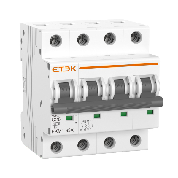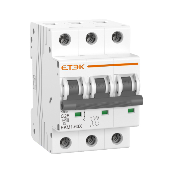 EKM1-63X系列小型斷路器適用于交流50Hz,額定電壓230V/400V,額定電流?63A的商業辦公樓、民用住宅及?般?業用途的終端配電線路中,對線路提供過載、短路保護,也可在正常情況下對線路進行不頻繁轉換操作。