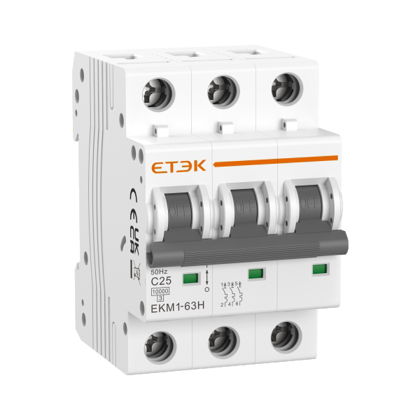 EKM1-63H系列小型斷路器適用于交流50Hz,額定電壓230V/400V,額定電流至63A的商業辦公樓、民用住宅及?般工業用途的終端配電線路中,對線路提供過載、短路保護,也可在正常情況下對線路進行不頻繁轉換操作。