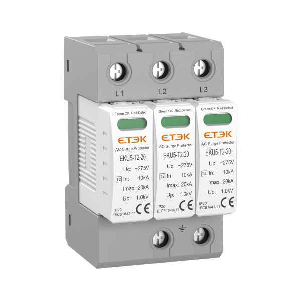 EKU5-T2適用于交流50/60Hz,額定電壓為單相 230V/三相400V的配電和控制系統(tǒng),滿足電涌保護(hù)器(SPD)II級(jí)試驗(yàn),用于抑制瞬態(tài)過電壓低于設(shè)備耐沖擊過電壓,泄放電涌能量,從而保護(hù)系統(tǒng)電路及設(shè)備。